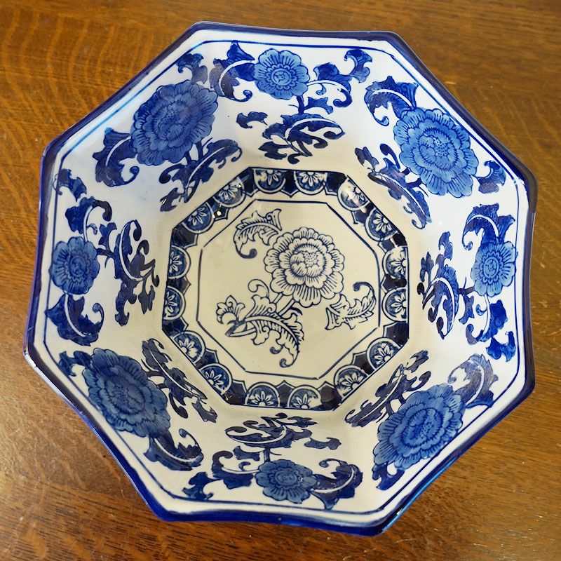 4. シノワズリ風 ボウル WH/BL 椀 置物 小物入れ 磁器 和風 青い花柄 テーブルウェア おしゃれ 磁器 食器