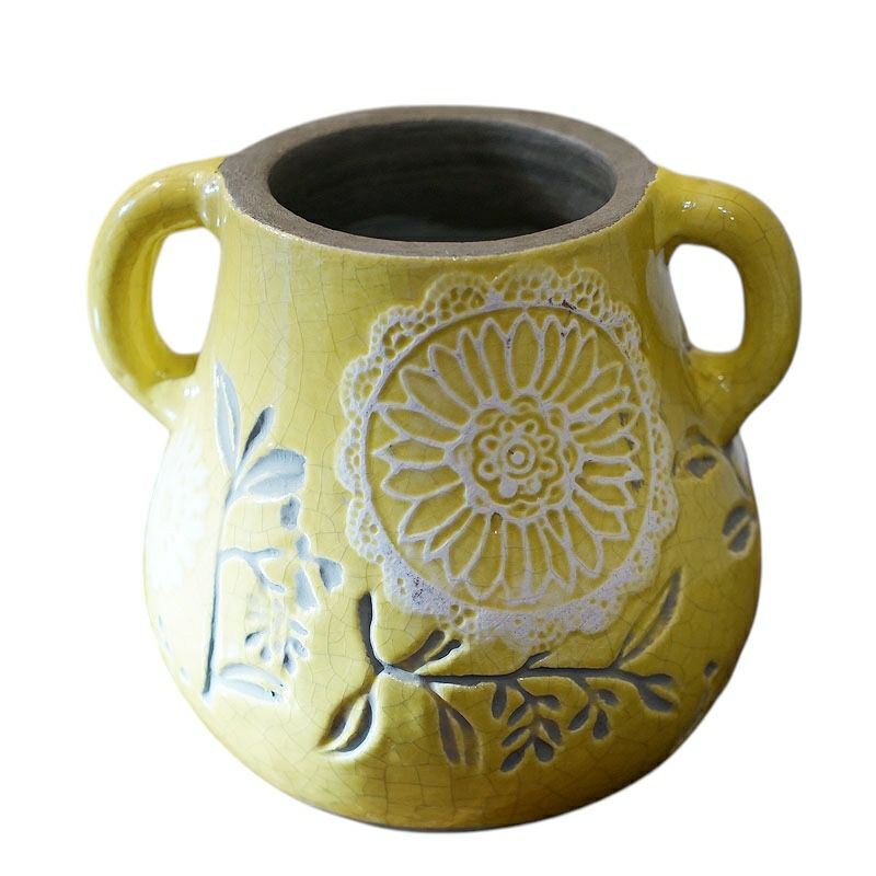 輸入雑貨・素敵花器シリーズ| フラワーベース 花瓶 陶器 Pear Vase Y フルール イエロー 陶器製 花瓶 陶器