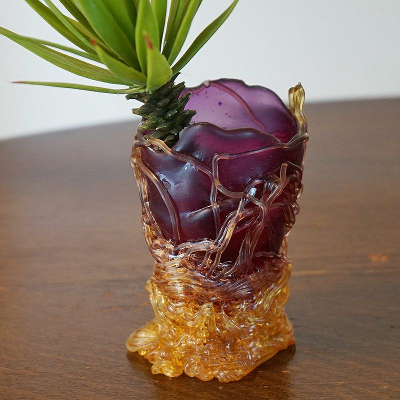【コメント】イタリアのシリコン作家さんが作った世界に一つの花瓶です。一つ一つハンドメイドで作られた花瓶で、シリコンの流れるような表現がアールヌーボーのイメージを演出してくれます。花瓶の他に置物としてオブジェのように飾ってください。
