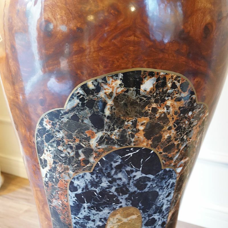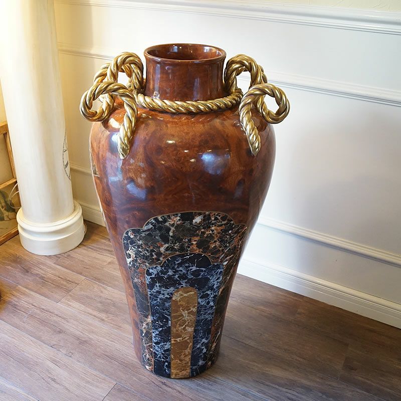 【コメント】イタリアは、陶器ブランド Marioni社 マリオー二の飾り大花瓶・オブジェです。高級ホテルのエントランスやロビーに置かれる場合が多い、気品とエレガントであり、圧倒される大きさの陶器の質感、現在はこの大きさの花瓶はマリオー二でも制作していない希少品の花瓶です。木の質感と大理石のプリントを施しています。ヴィンテージ商品になります。