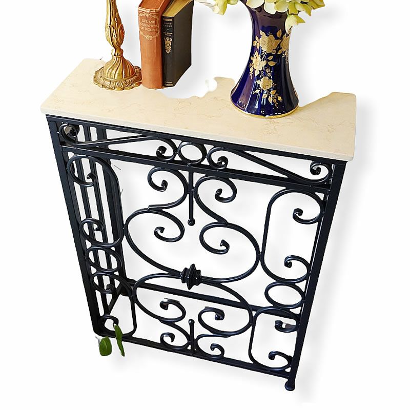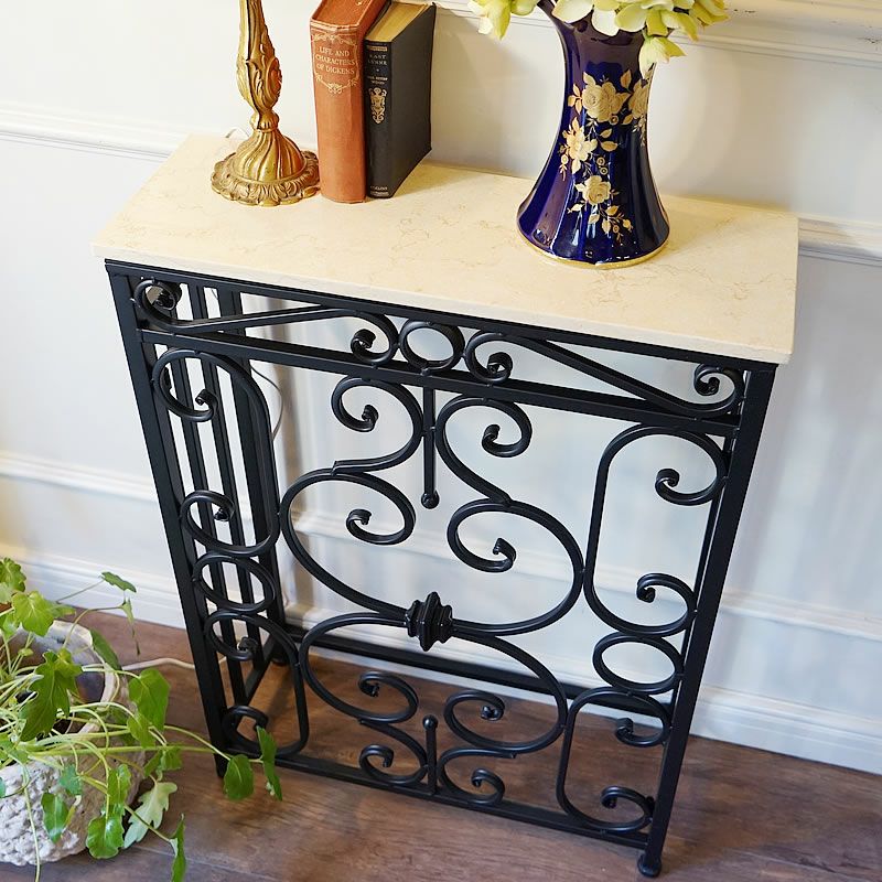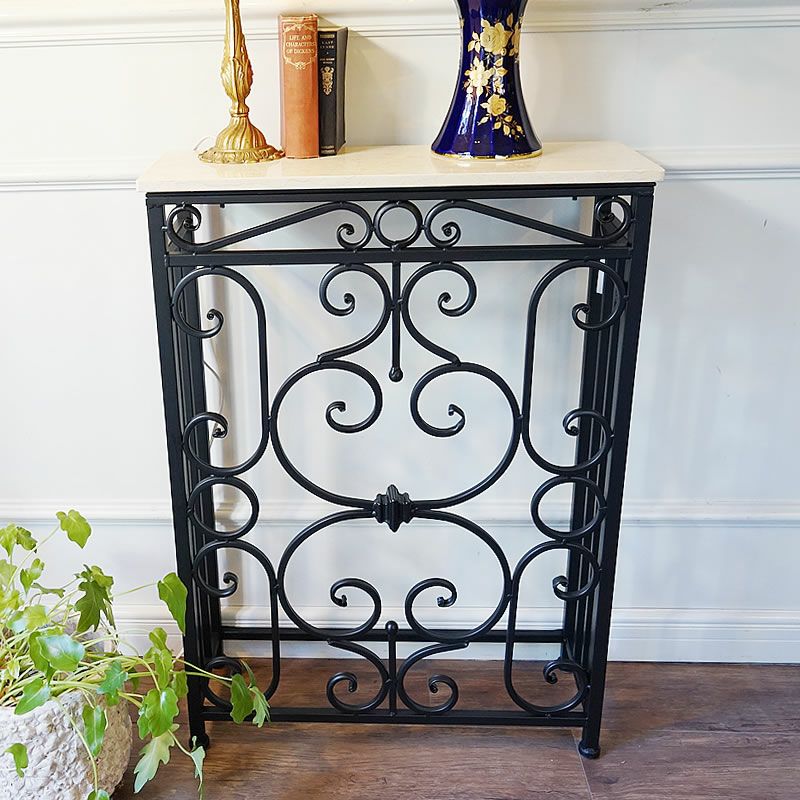 輸入家具 素敵なアイアン家具コレクション| アイアン コンソールテーブル 玄関 大理石製天板 折りたたみ組立式【送料無料】
