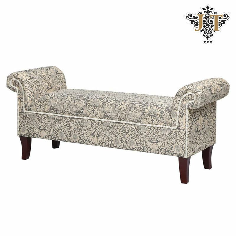 輸入家具で暮らしを豊かに楽しく!| ジェニファーテイラー ロールアームベンチ 布 いちご泥棒柄【送料無料】ピュアモリス風 モリス Morris