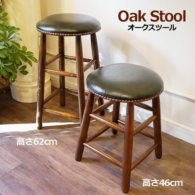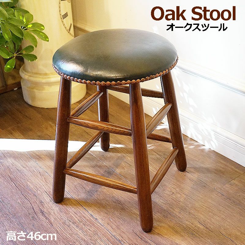 アンティーク家具調 スツール 木製 アンティーク 丸 高さ46cm オーク脚 リプロダクト家具 おしゃれ