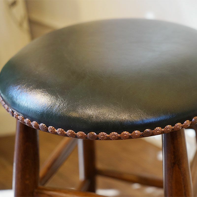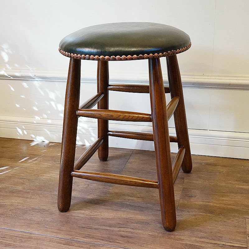 イギリスのアンティーク家具を忠実に再現した合皮張りのスツールです。キッチンやカウンターの補助スツールとしてご活用いただけます。お部屋のアクセントとしても目を引くアイポイントとしても素敵に演出できます。キッチンのレスとスツールとしていかがですか?