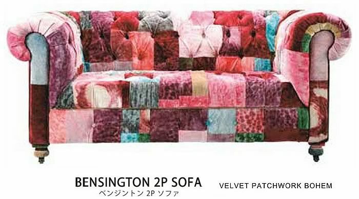 輸入家具・英国アンティーク家具調|HALO ハロ シリーズ 【受注生産】英国 アンティーク HALO ハロ【ベンジントン2Pソファ(ベルベットパッチワークボヘム)】