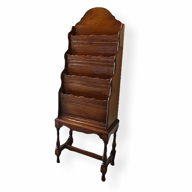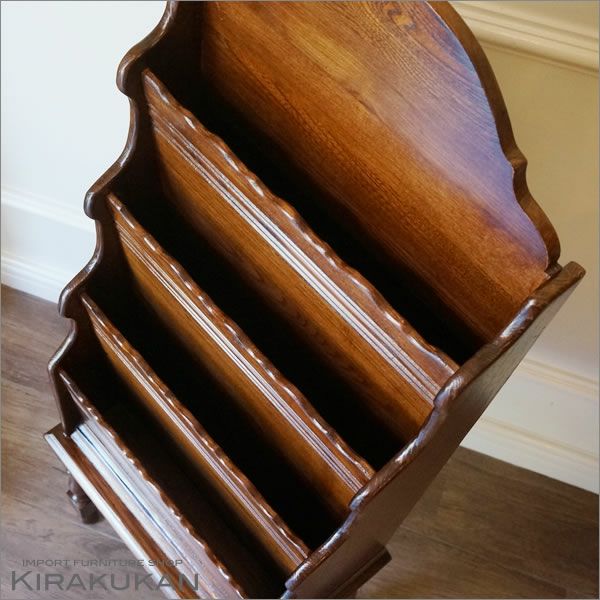 【コメント】アンティーク家具調のおしゃれなブックスタンドで、アンティークを忠実に再現したリプロダクト家具です。現代に調和するように使いやすいサイズにデザインにしています。使いやすくマガジンを整理整頓できるラックです。店舗用としてもお使いいただけます。