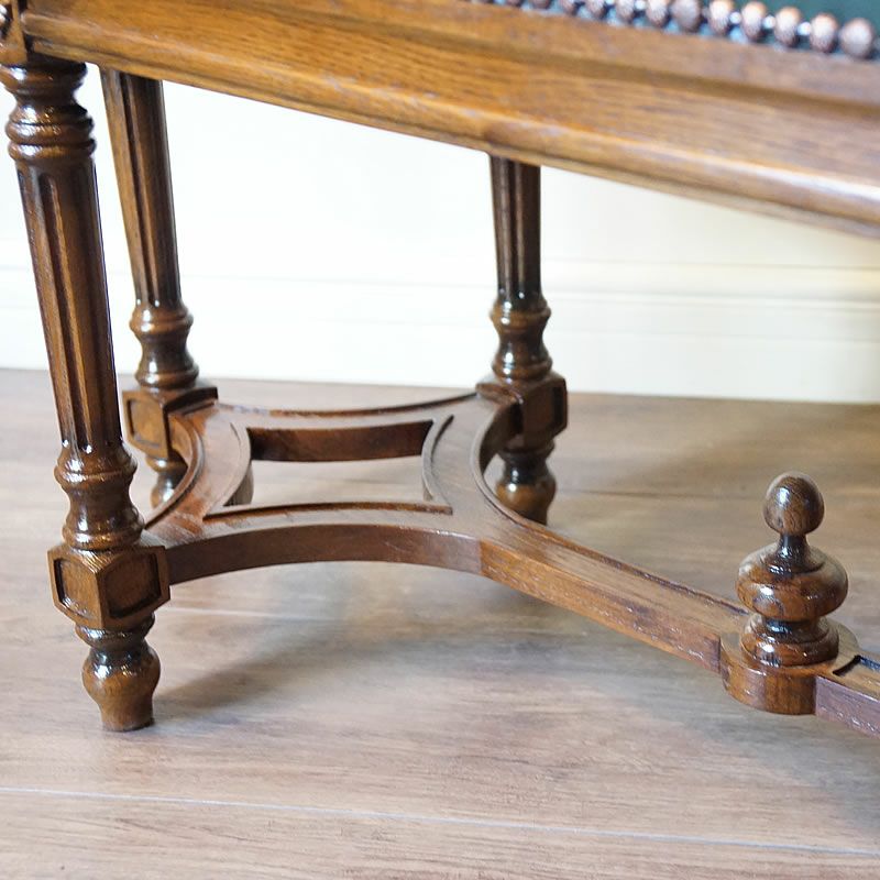 4. アンティーク家具 ロングベンチ スツール 合皮 グリーン オーク脚 リプロダクト家具