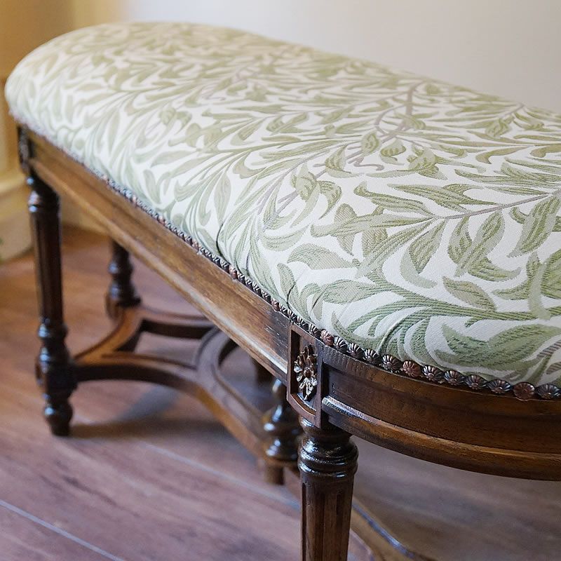 5. アンティーク家具 ロングベンチ スツール ウィリアムモリス張り オーク脚