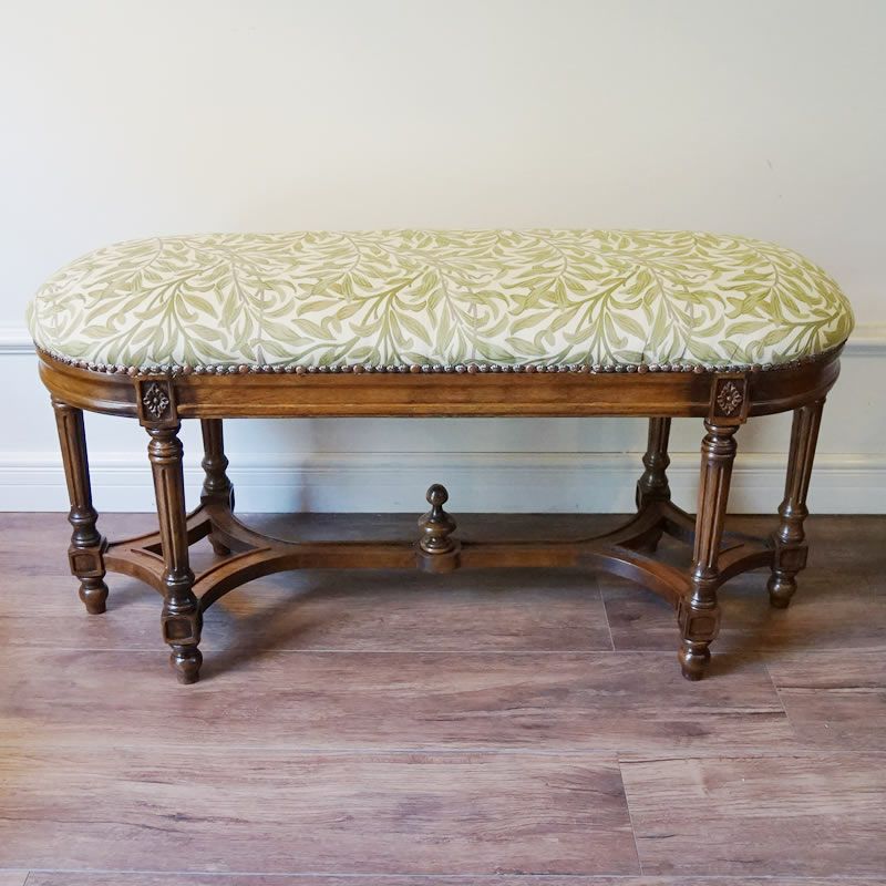 【商品名】アンティーク家具 ロングベンチ スツール ウィリアムモリス張り オーク脚【送料無料】ウィローボウ張り リプロダクト家具