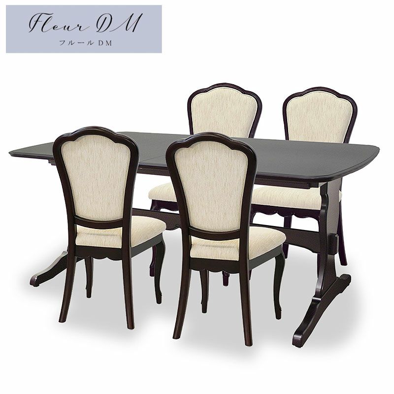 フレンチクラシックデザインシリーズ| フルール Fleur-DM ダイニング5点セット DT165-EXT チェアD 4脚 エクステンション 伸長式【送料無料・開梱設置込み】東海家具