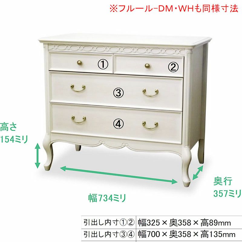フレンチシックエレガントシリーズ| フルール Fleur-WH チェスト85 ホワイト 【送料無料・開梱設置込み】 東海家具