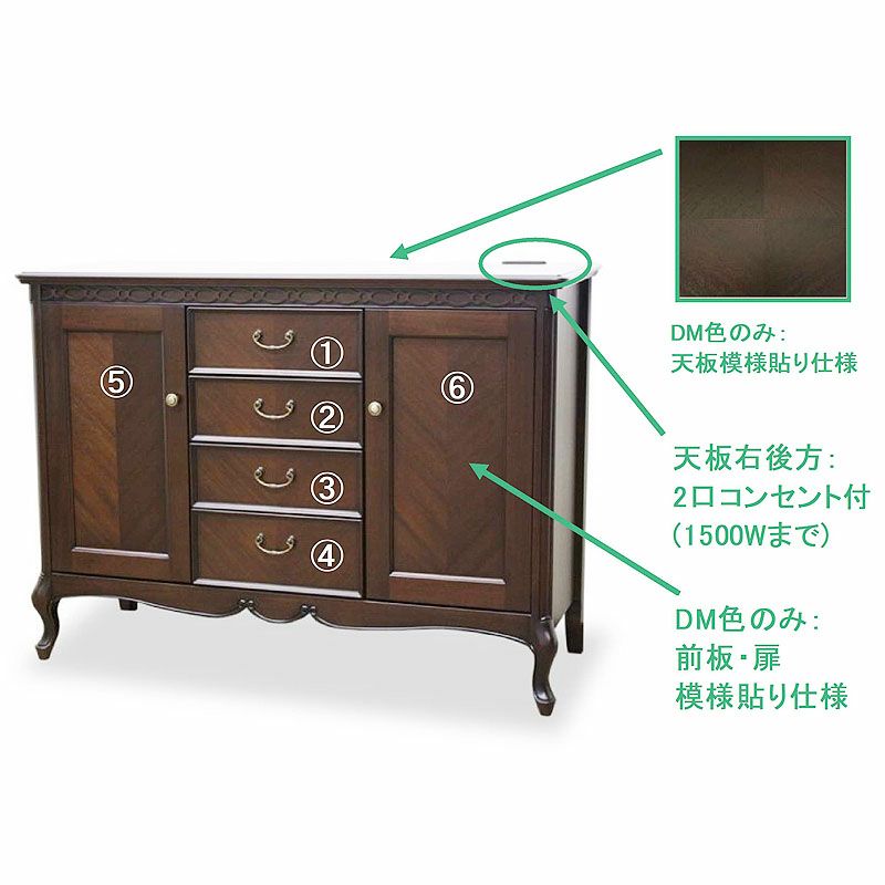 フレンチシックエレガントシリーズ| フルール Fleur-WH サイドボードSB114 ホワイト 【送料無料・開梱設置込み】 東海家具