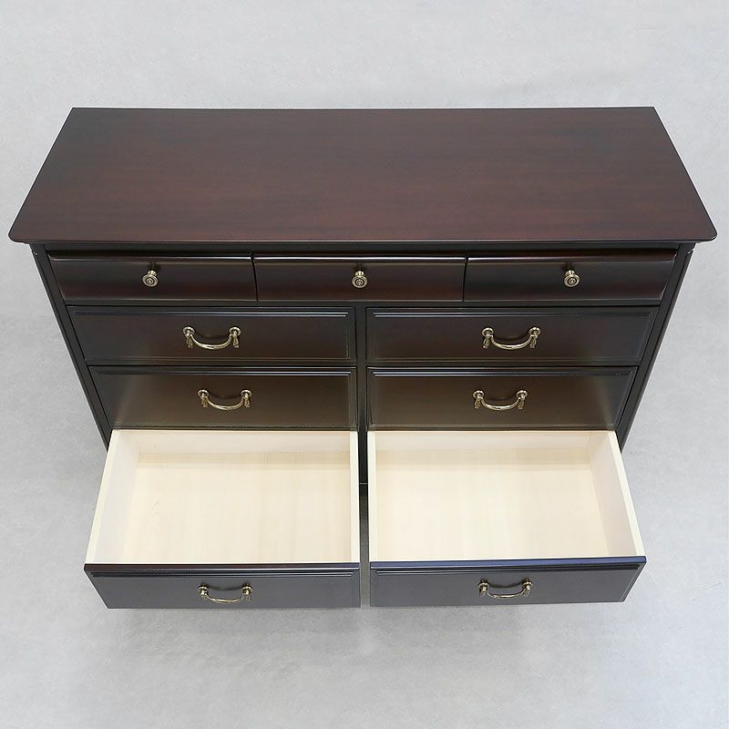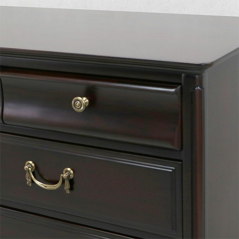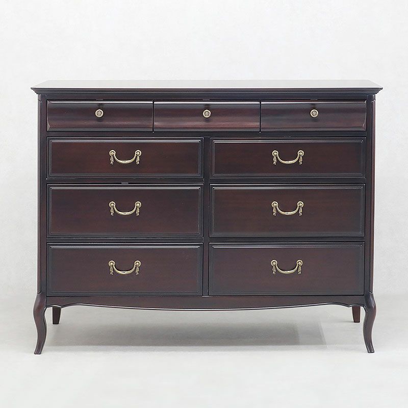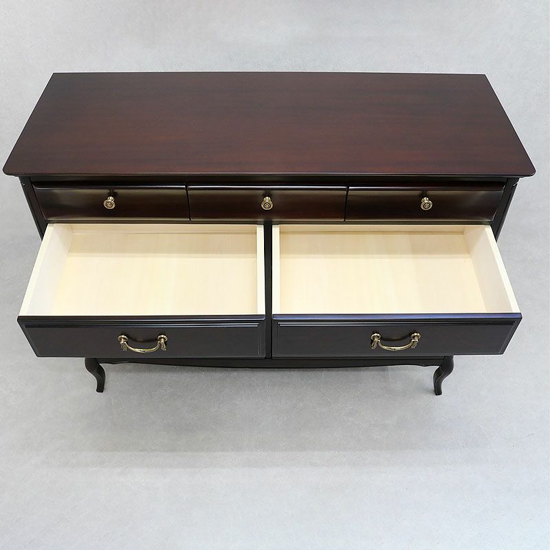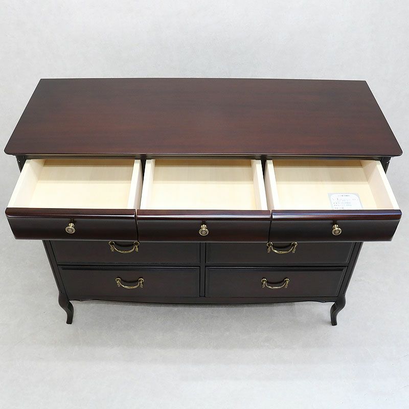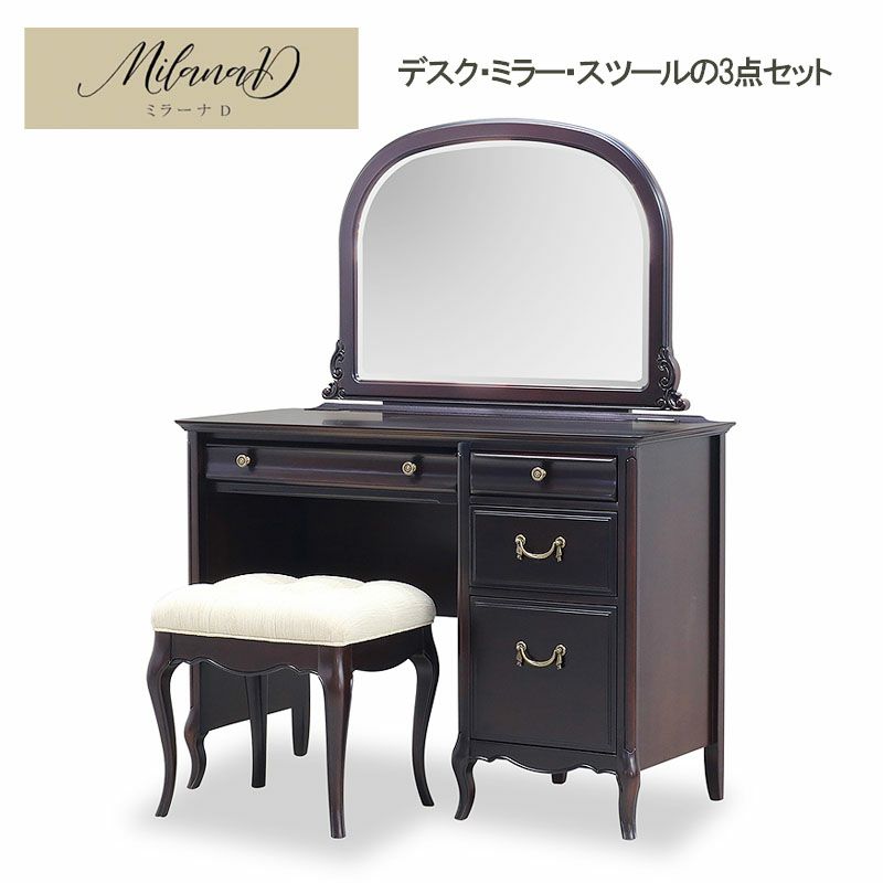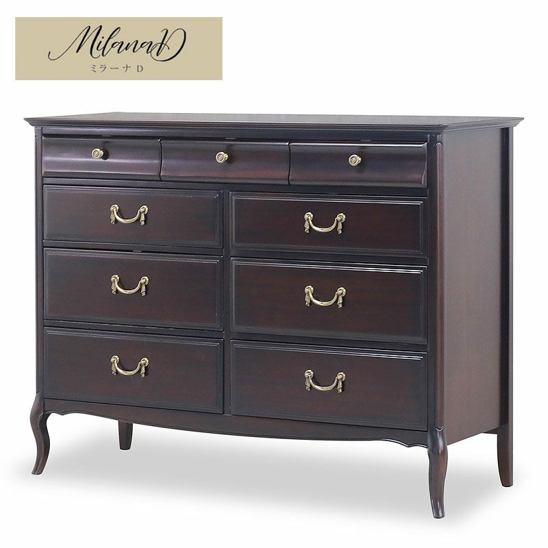 ミラーナDは、ダークマホガニーのなめらかで美しい杢目の流れるような曲線デザインと、すっきりとしたカブリオールレッグ(猫脚)が特徴のモダンフレンチな雰囲気が漂うエレガンスシリーズです。