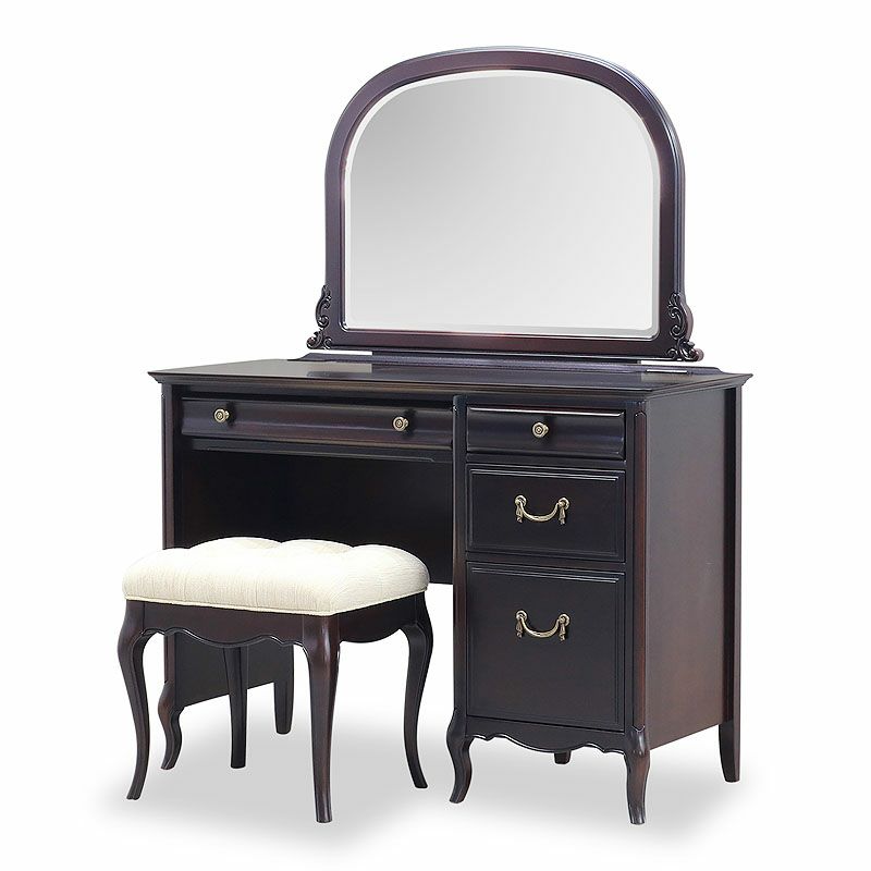 5. Milana-D ミラーナ D ドレッサー3点セット(デスク110・ミラー・スツール)【送料無料・開梱設置込み】ダークマホガニー