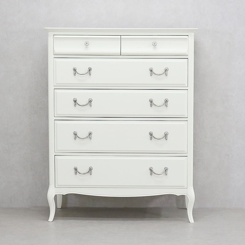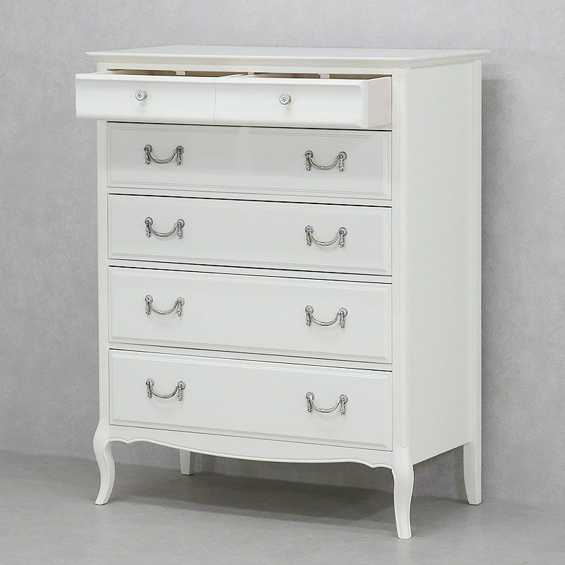 優美さと繊細さを流線の美しさで活かしたホワイトエレガンススタイル| Milana-W ミラーナ Wチェスト80-5【送料無料・開梱設置込み】ホワイト
