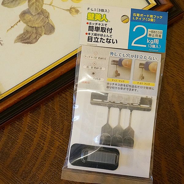 5. 壁美人 かべびじん【ラージフック Lタイプ 静止荷重2Kg:3個入り】メール便使用 絵画 インテリア 額絵