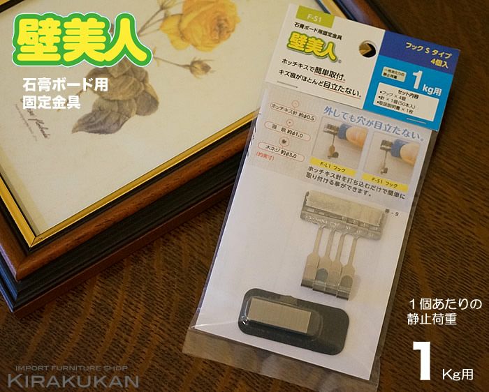 3. 壁美人 かべびじん【スモールフック Sタイプ 静止荷重1Kg:4個入り】メール便使用 絵画 インテリア