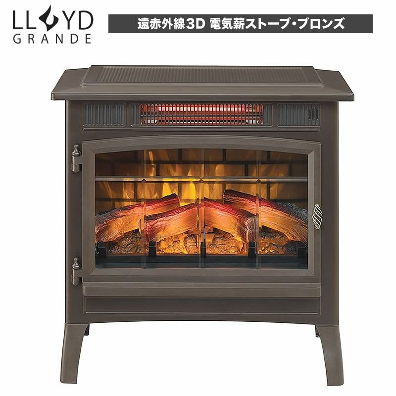 【商品名】電気式暖炉 ロイドグランデ 遠赤外線 3D 電気薪ストーブ 室内 (1000W) ブロンズ色【送料無料】煙突不要 おしゃれ