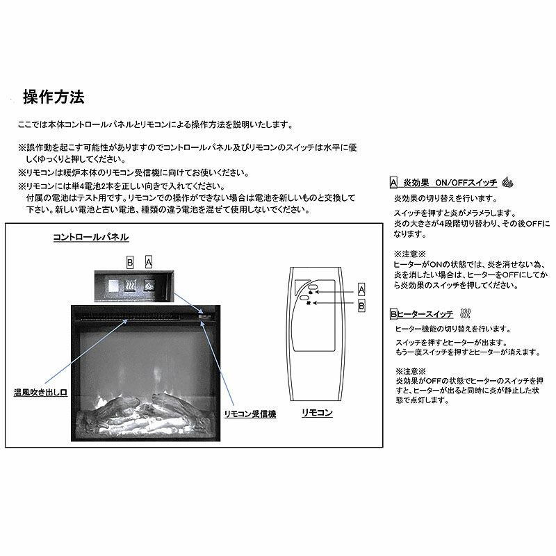 ※電気式暖炉は補助暖房器具ですので本商品だけでお部屋全体を暖めることはできません。
