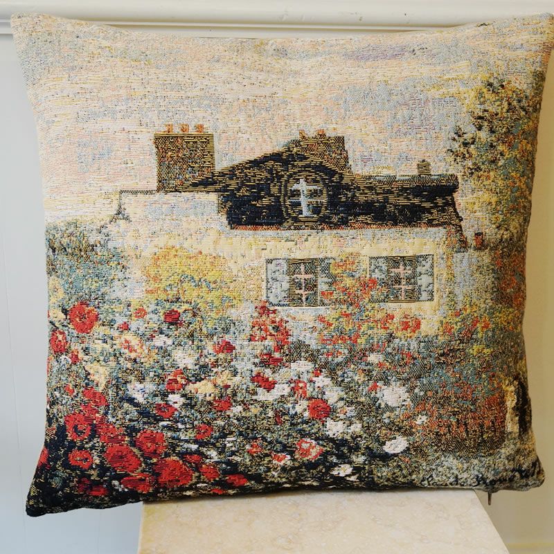 【コメント】クロード・モネの絵(家)をクッションにしました。 正式には「アルジャントゥイユのモネの庭」と言うそうです。リビングのソファの上にモネの絵を飾る。リビングがギャラリーになり、オシャレ感がプラスされますね。ヨーロッパ伝統のゴブラン織を、繊細な美意識を持つ日本人の感性に合う商品をご紹介しております。※手作りのためサイズが1点1点異なります。