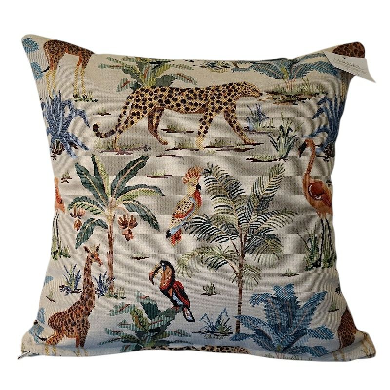 フランス・ベルギーから直輸入したタペストリーやクッションなどは、