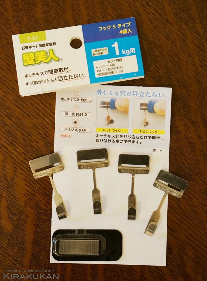 3. 壁美人 かべびじん【スモールフック Sタイプ 静止荷重1Kg:4個入り】メール便使用 絵画 インテリア