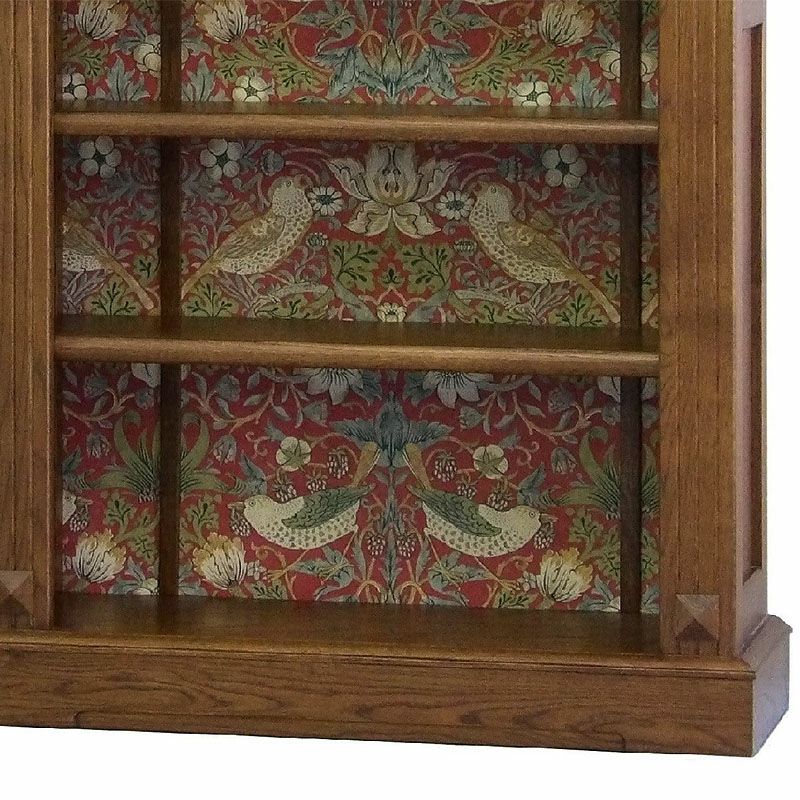 【コメント】バックの壁紙は基本仕様はいちご泥棒のレッドですが、お好みでブルーを貼ることもできますので、ご希望の方はご指定ください。付属品:棚板4枚(可動4枚)側:框組構造