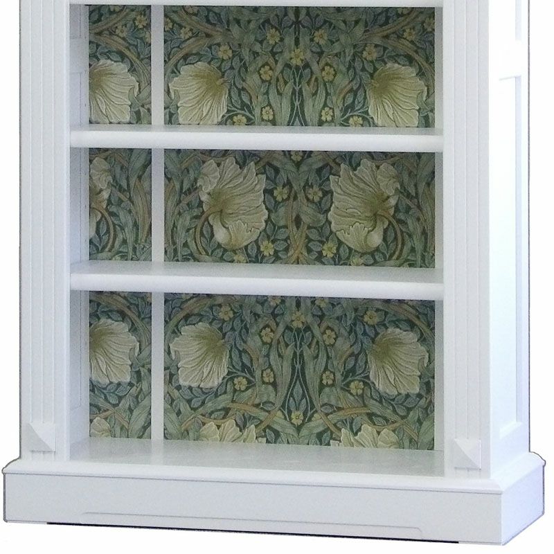 【コメント】英国製のウィリアムモリスの壁紙を貼ったブックケース登場です。フレームは2種類(ブラウン・ホワイト)で、壁紙もフレームに合わせて2種類をご用意しております。インテリアがおしゃれで英国風の演出ができますね。モリスファンには嬉しいオープンシェルフです。付属品:棚板4枚(可動4枚)側:框組構造