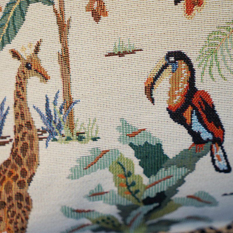 【コメント】ゴブラン織りを使用したサファリ柄のかわいいクッションカバーです。ソファの上に飾るだけでリビングが華やかになり楽しい空間になります。ギフト・プレゼントにも最適です。
