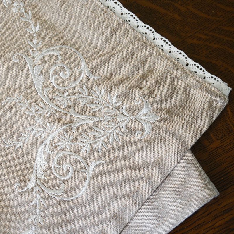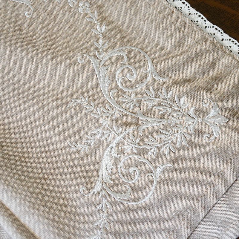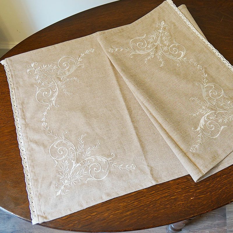 【コメント】シンプルデザインのテーブルランナーです。アクセントに両端にホワイトで刺繍を施していておしゃれです。優しい感じのナチュラル感がある素材ですからどんなダイニングテーブルにもよく似合います。
