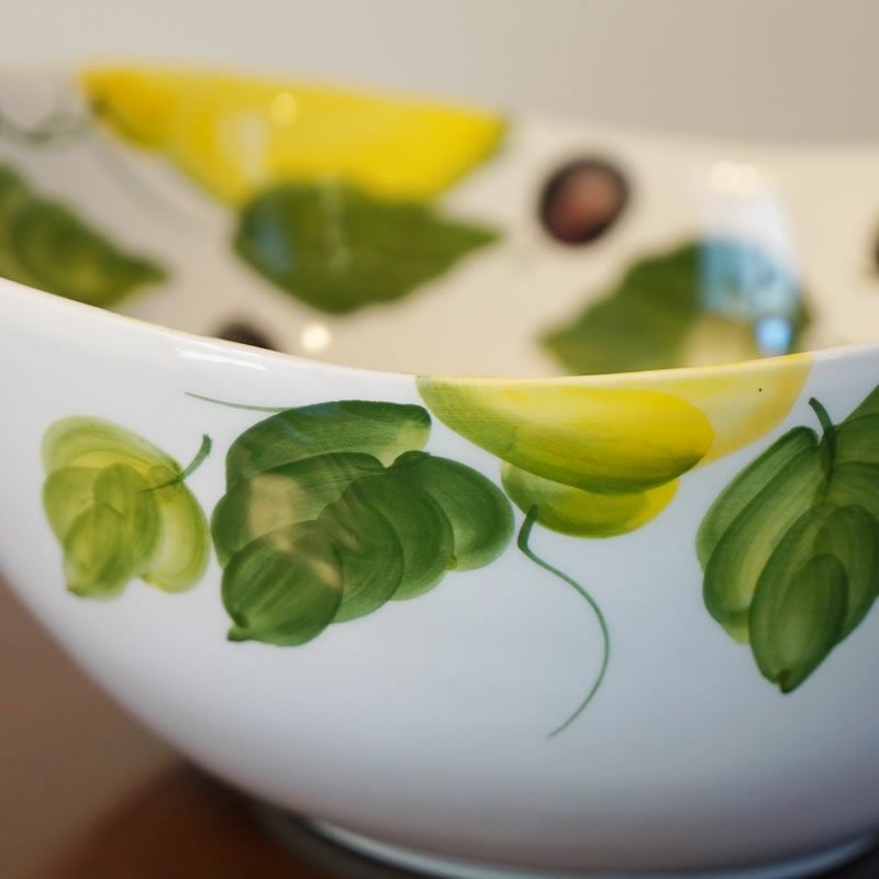 【コメント】イタリア製のレモン柄をモチーフにした陶器シリーズです。テーブルの上が華やかになり、楽しく演出してくれる深めのボウル サラダボウルです。テーブルウェアを揃えて、楽しい暮らしを演出します。