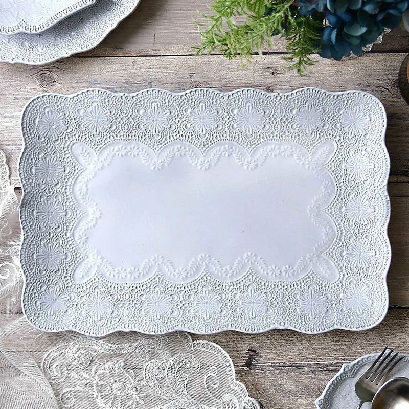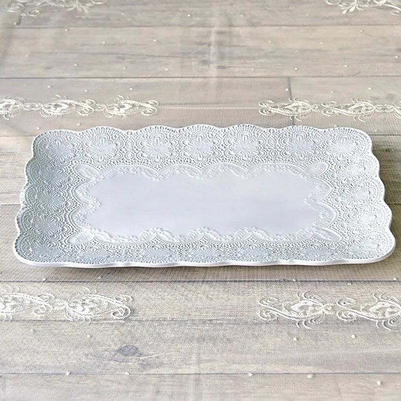イタリア「ラ・セラミカ」繊細なレース柄と優しいカラーの「レースシリーズ」| ラ セラミカ メルレット ホワイト レース スクエアプレート プレート皿 イタリア製 陶器製 皿 プレート