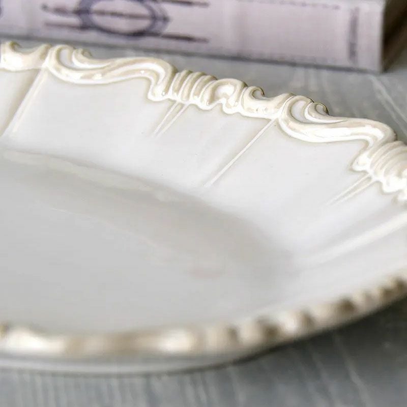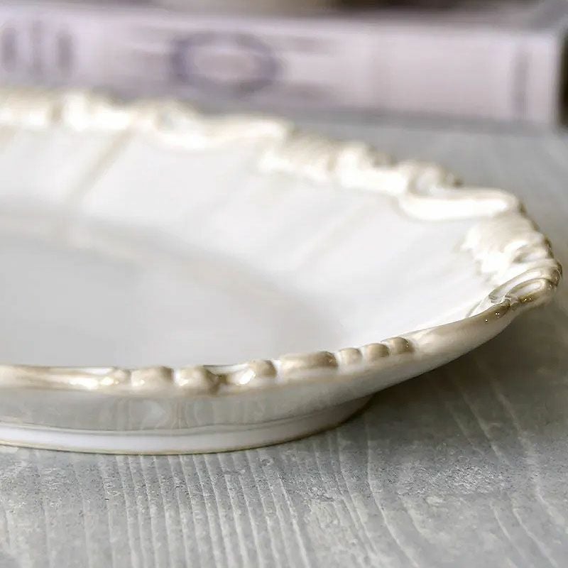 【コメント】シャビーシックな仕上げのお洒落な白い陶器の食器
