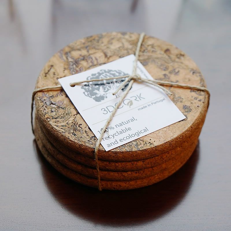 生活雑貨で暮らしを豊かに楽しく!| モンタード ラウンド コースター4枚 3D CORK社 ポルトガル製 天然コルク テーブルウェア
