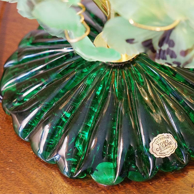 【コメント】ヴィンテージ・イタリアはベネチアガラスの美しい、葡萄テーブルランプです。葡萄をイメージした、本体は金属製でゴールド仕上げを使用し、一つ一つ手作りで作られるぶどうの房が素敵です。葡萄のシェードが2房ありその房はオパリーナとも、オパールセントとも呼ばれていて、宝石のオパールの輝きに似ていることからそう呼ばれています。ランプベースは大変ゴージャスな貴重なランプになっています。質感と仕上げにワインが美味しくなるランプです。ヴィンテージ(USED)をご理解の上、ご購入ください。価値ある逸品です。