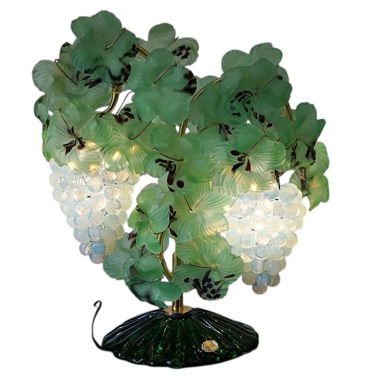 5. USED ヴィンテージ イタリア製 ベネチア 葡萄 ブドウランプ 2灯 オパリーナ オパールセント アンティーク テーブルランプ
