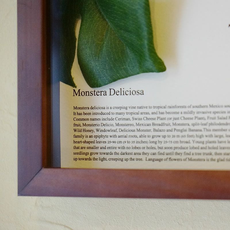 リーフ額は、お部屋を楽しく見る目を癒やしてくれます| 掛け時計 クロック モンステラ・プルメリア(ブラウン)造花 観葉植物 おしゃれ 絵画 インテリア 壁掛け 額入り 額装込