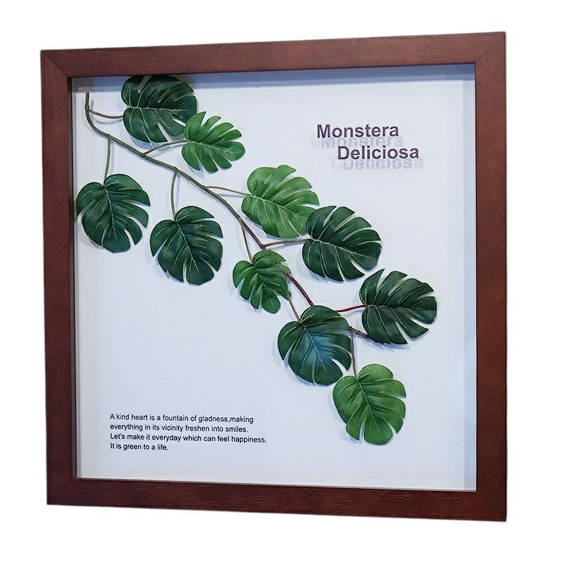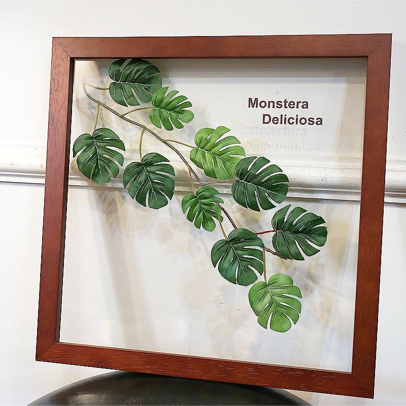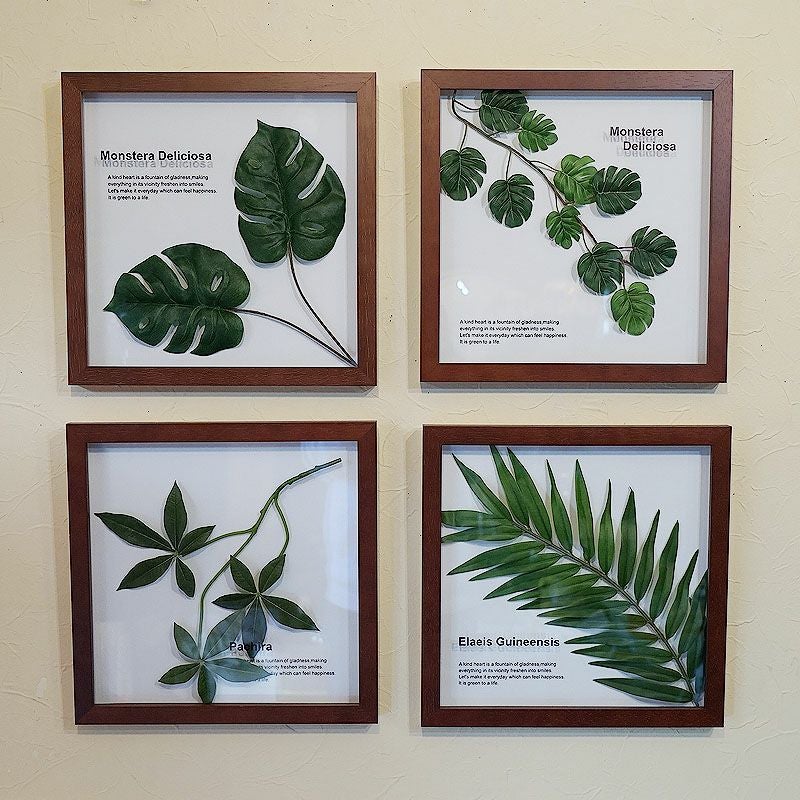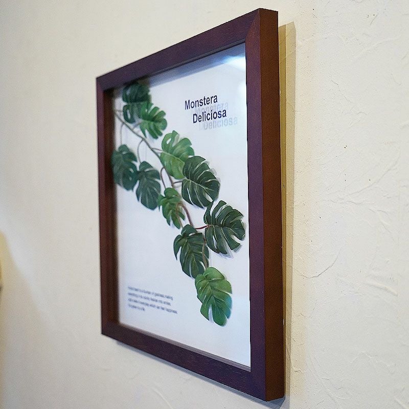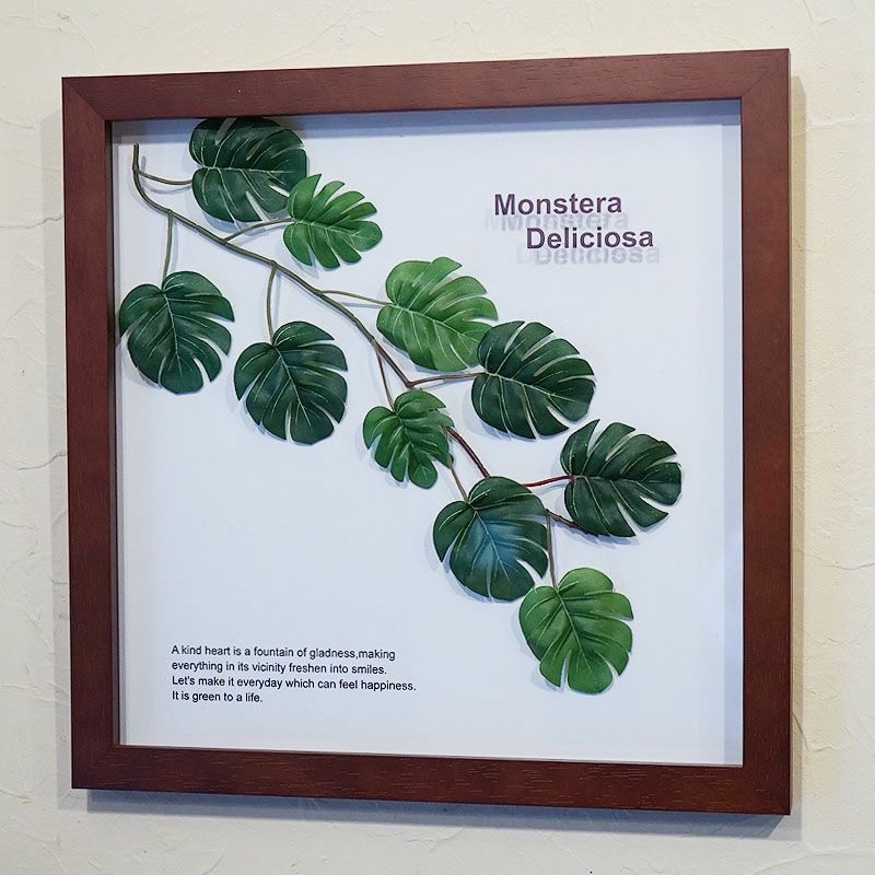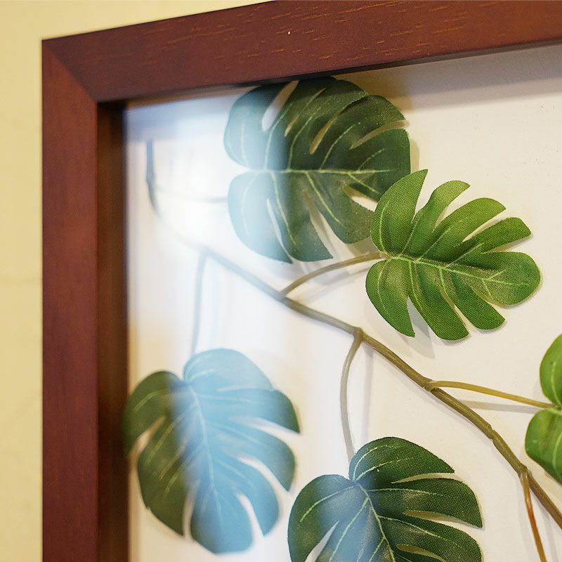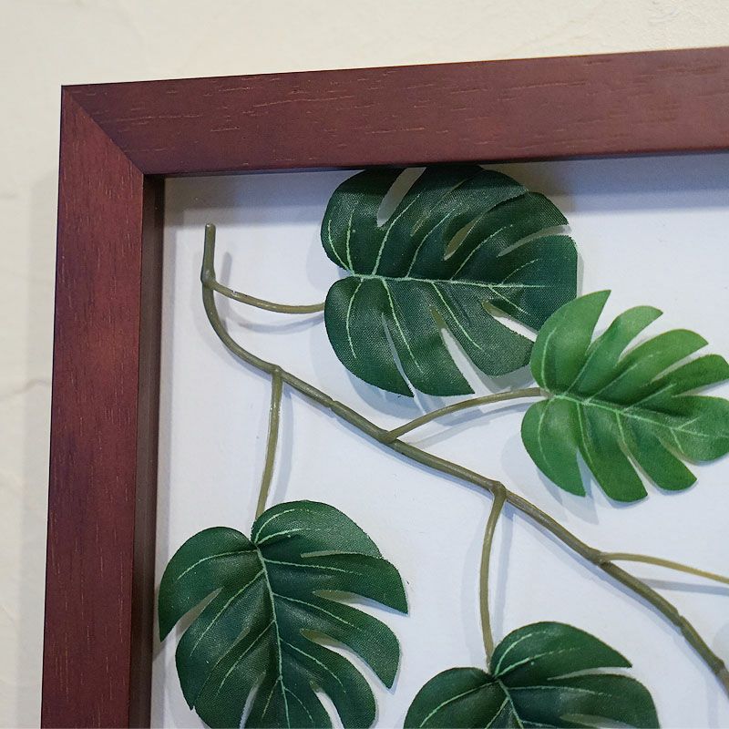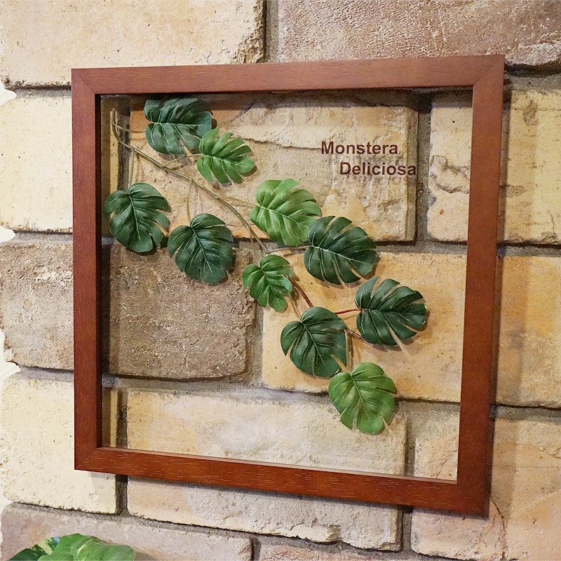 リーフ額は、お部屋を楽しく見る目を癒やしてくれます| リーフパネル モンステラ3 額 MONSUTERA ブラウン フェイクグリーン リーフフレーム 造花 観葉植物 壁飾り