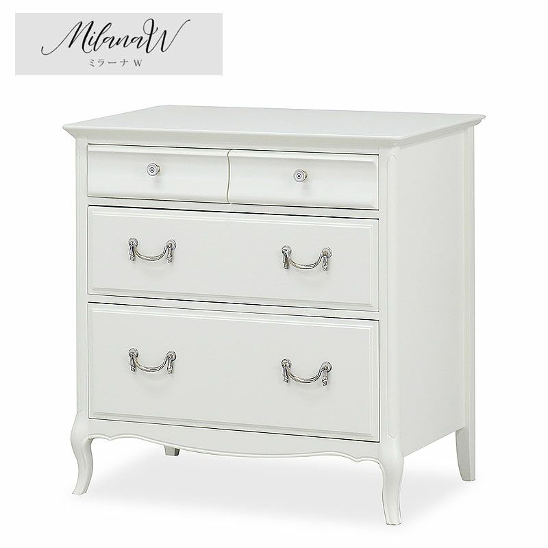 優美さと繊細さを流線の美しさで活かしたホワイトエレガンススタイル| Milana-W ミラーナ W チェスト70-3【送料無料・開梱設置込み】ホワイト