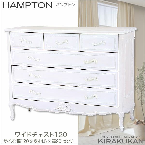 5. HAMPTON:ハンプトン 白家具 【ワイドチェスト120】 輸入家具 おしゃれ ホワイト 姫家具 フレンチ家具