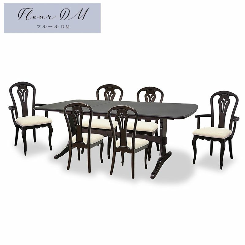 フレンチクラシックデザインシリーズ| フルール Fleur-DM ダイニング7点セット DT165-EXT チェアB 4脚 アームチェアB 2脚 エクステンション 伸長式 【送料無料・開梱設置込み】東海家具