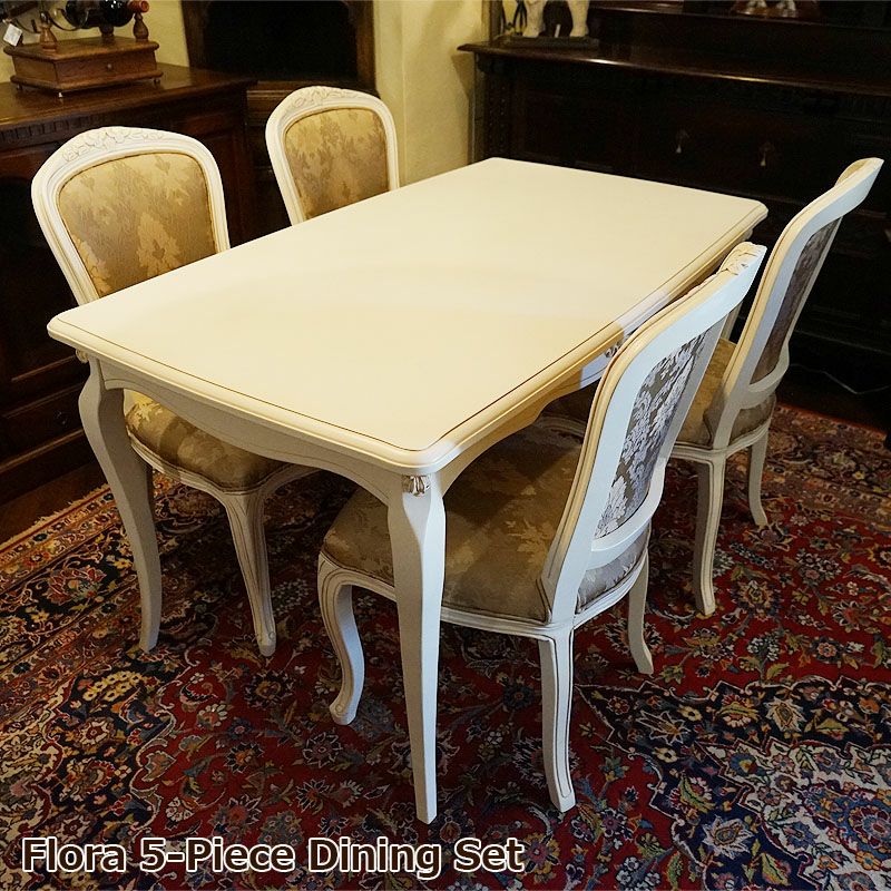5. Flore フローラ ダイニング5点セット ダイニングテーブル140 ダイニングチェア 木製 白家具 輸入家具
