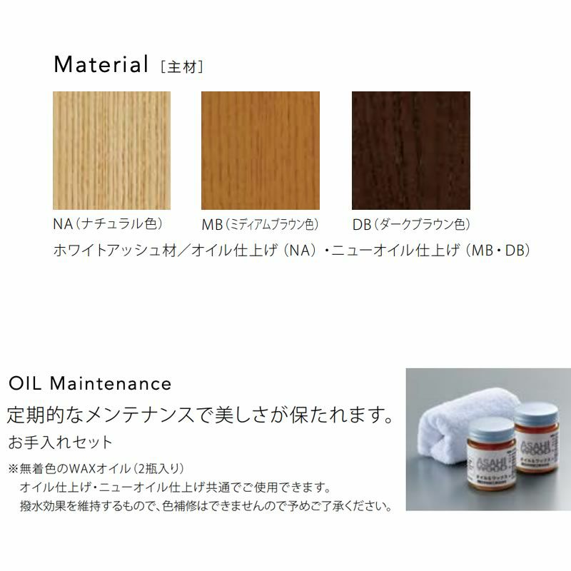 【材質・仕上げ】主材:ホワイトアッシュ材/オイル仕上げ(NA)・ニューオイル仕上げ(MB・DB)