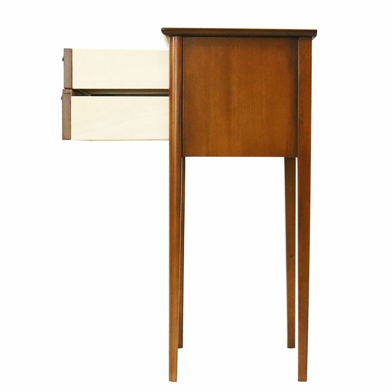 温もりを感じるシンプルなボディーに、マホガニー無垢材を削り出した手触りの良い取っ手と、すっきりと伸びたテーバードレッグが特徴です。