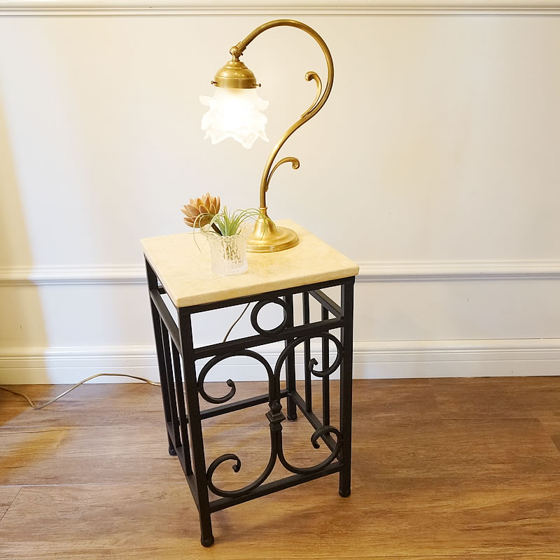 【商品名】アイアン 花台 コンソール H45 (モダンスタイル・大理石製天板)完成品 クラシック アンティーク おしゃれ