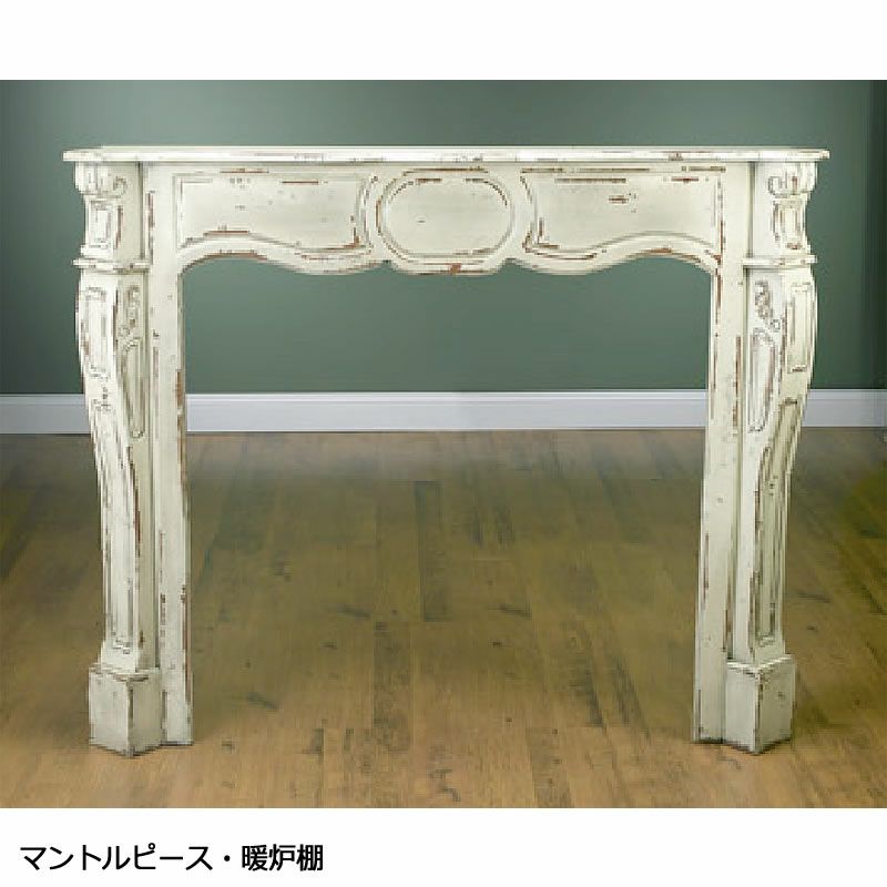 輸入家具 素敵なアンティーク家具調コレクション| 壁掛け暖炉棚 マントルピース パーチメントホワイト仕上げ (暖炉カバー・コンソール) おしゃれ