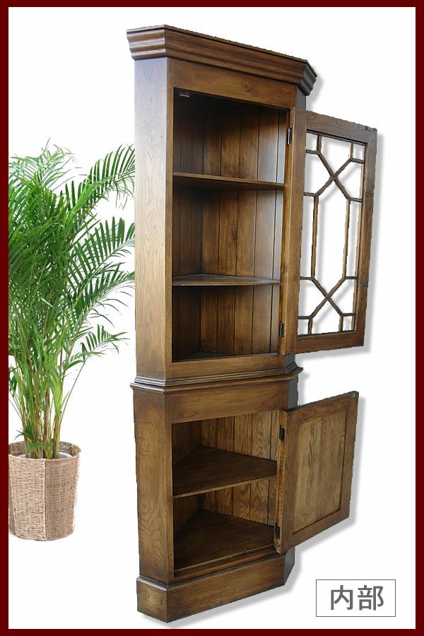 輸入家具 素敵なアンティーク家具調コレクション| イングランドスタイル コーナーキャビネット 飾り棚