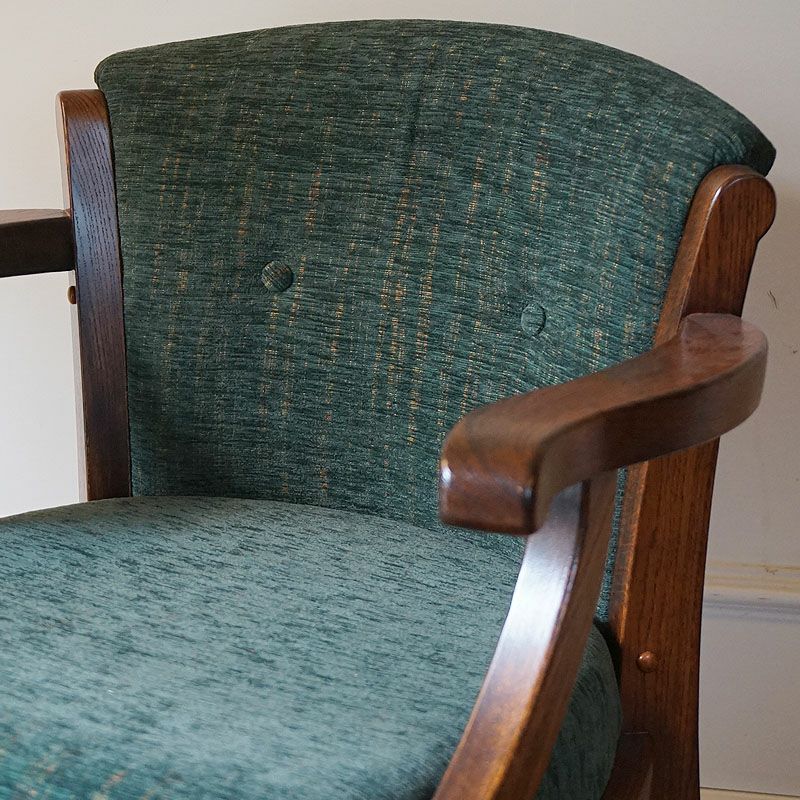 アーム付きで、キャスターも付いていますので、下がったり、回ったりが簡単にできる便利な英国スタイルのアームチェアです。