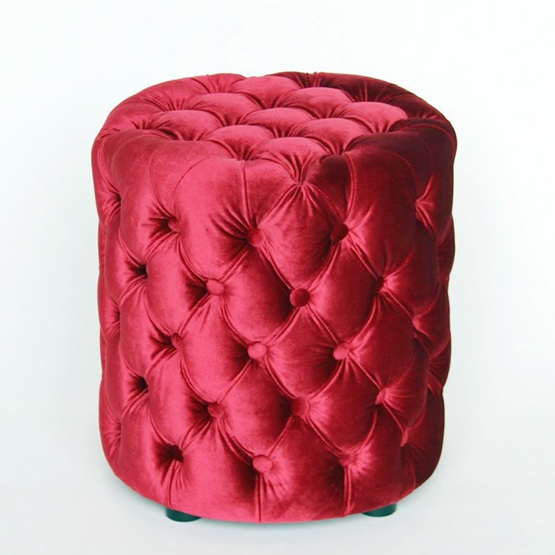ヨーロピアンインテリアで素敵で豊かな暮らし| スツール ボタン留め(ファブリック・ベルベット レッド)