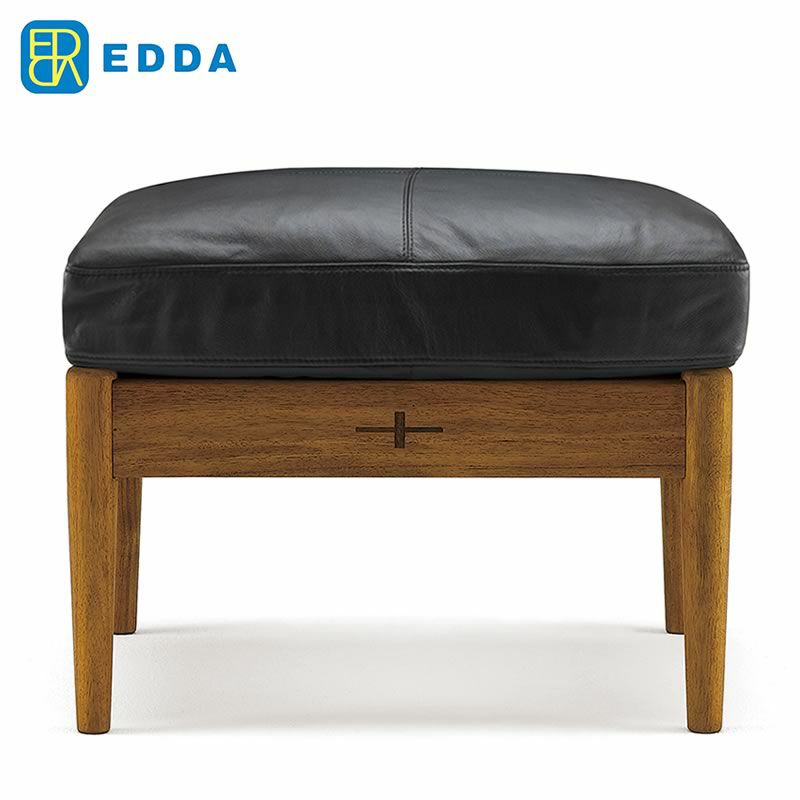 北欧家具調|EDDA エッダ| 北欧スタイル家具 EDDA エッダ レザー オットマン ブラック本牛革張り